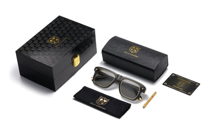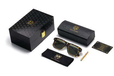 Elke zonnebril wordt met de hand vervaardigd door ervaren vakmensen. Wij gebruiken uitsluitend hoogwaardige Italiaanse acetaat en verfijnde details in 18K of 24K goud. Dit geeft elke bril een luxueuze uitstraling en garandeert een uitzonderlijke levensduur.