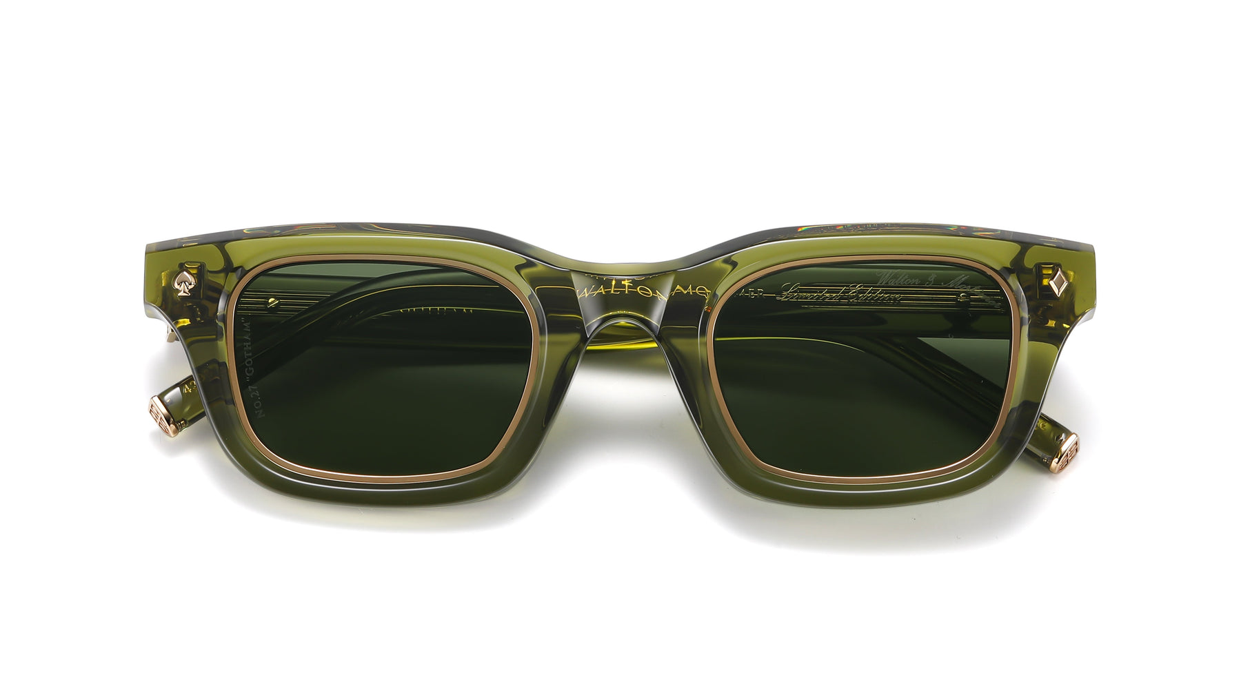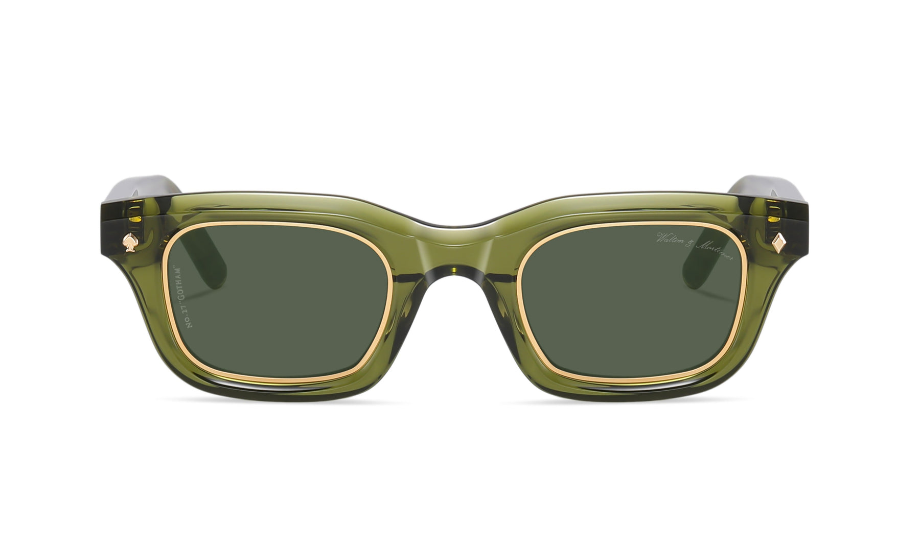 De No.27 “Gotham” uit de exclusieve Runway Collection is een toonbeeld van luxe en vakmanschap. Dit model is handgemaakt van 8 mm dik Italiaans Mazzucchelli-acetaat in de kleur Bosco Green (transparant groen), en uitgerust met premium groene Carl Zeiss lenzen. De subtiele 24K gouden details maken het design compleet.
